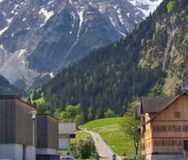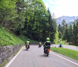 “We”, zijn Fré op zijn GTS50, Stefan op de K80, Wim op de K80, Wybe op een Honda SS50 en ik op mijn blauwe GTS50. De motoren stonden op de aanhanger en na een voorspoedige dagreis kwamen we bij Büchboden aan in het hart van het natuurpark Grote Walsertal.